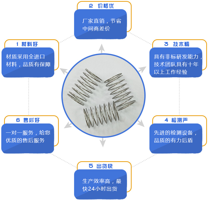 | 不銹鋼絲 (sus) | 有磁、無磁、光面和霧面 (樹脂面、暗面) | 201、202…… | 含鎳量少,達不到鹽霧測試 要求。 | 工藝彈簧多用此材料 |