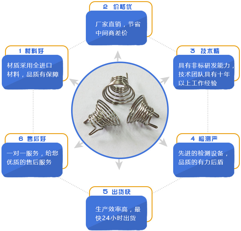 | 不銹鋼絲 (sus) | 有磁、無磁、光面和霧面 (樹脂面、暗面) | 201、202…… | 含鎳量少,達不到鹽霧測試 要求。 | 工藝彈簧多用此材料 |