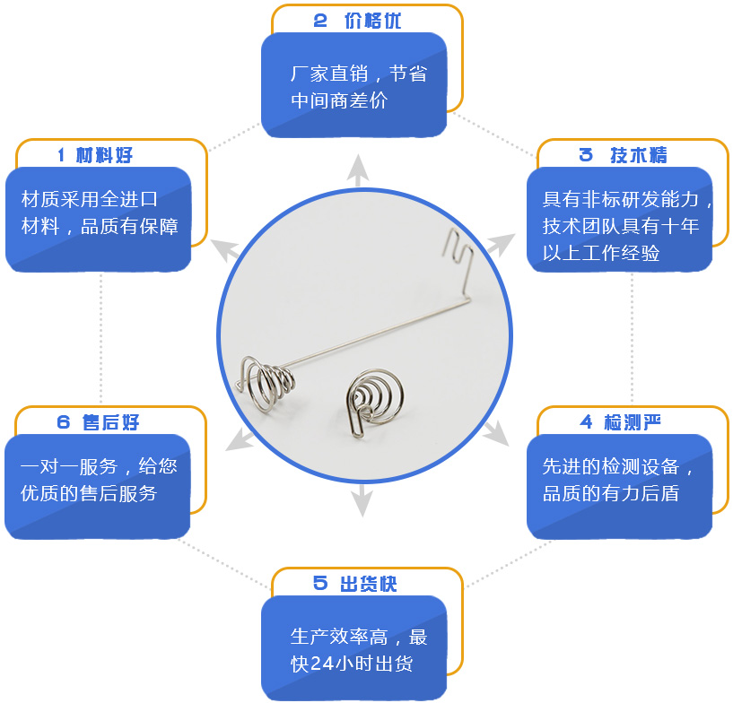 | 不銹鋼絲 (sus) | 有磁、無磁、光面和霧面 (樹脂面、暗面) | 201、202…… | 含鎳量少,達不到鹽霧測試 要求。 | 工藝彈簧多用此材料 |